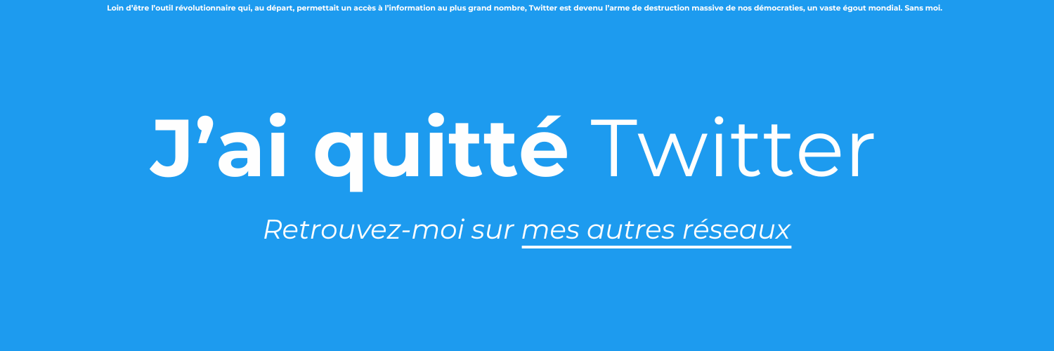 J'ai pris la décision de quitter Twitter. Vous pouvez continuer à me suivre sur mes autres réseaux, accessibles dans le lien ci-dessous.