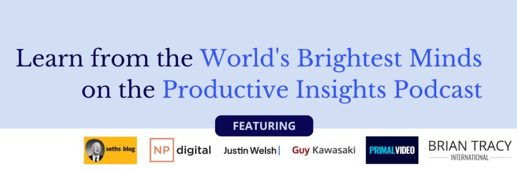 Host of the Productive Insights podcast featuring brilliant minds like Guy Kawasaki, Seth Godin, Neil Patel. Learn more at