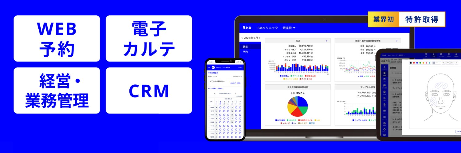 【導入院数No.1🏅特許取得済】B4Aは、リアルタイム予約や電子カルテの機能をそなえた、自由診療クリニックのDXを実現するクラウドツールです。予約~決済まで、クリニック運営に必要な機能が網羅的に備わっています。新規集客・リピート率向上、業務効率改善につなげ、売上アップをかなえます。#自由診療 #自費診療 #医療DX