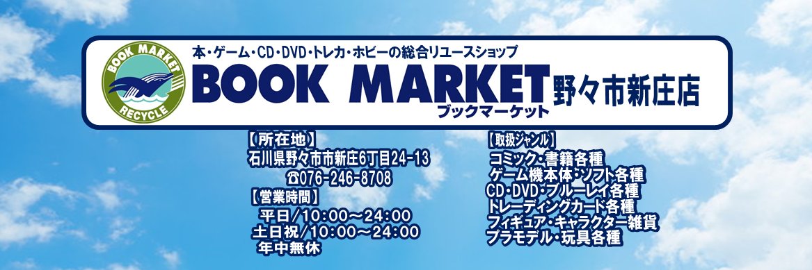 本 ゲーム CD 映像ソフト トレカ フィギュア プラモを取り扱うリユースショップです!デュエルスペース完備。入荷情報、買取情報、SALE情報などつぶやいていきます!大会やイベント情報もポストしますので要チェックです!野々市市上林4-666 TEL076-246-8708 営業時間10時~23時