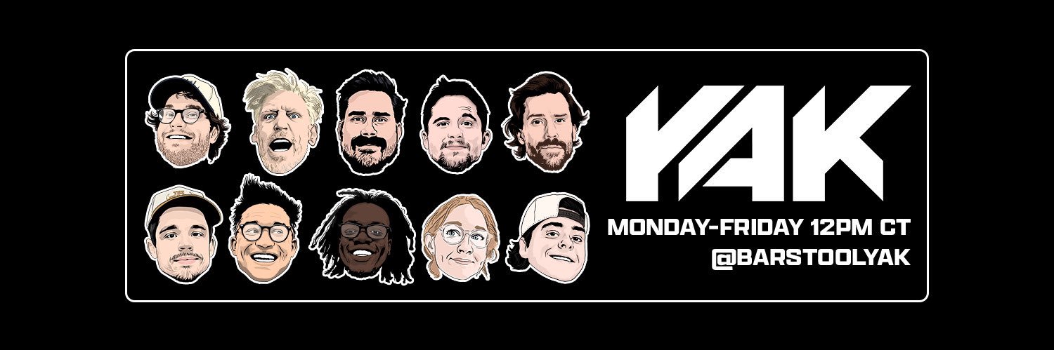 The Yak airs M-F at 1pm ET w/ @BarstoolBigCat, @Katiemoneygrabz, @kbnoswag, @nickturani, @BFW, @clubtrillion, @dannyjconrad & @StevenCheah