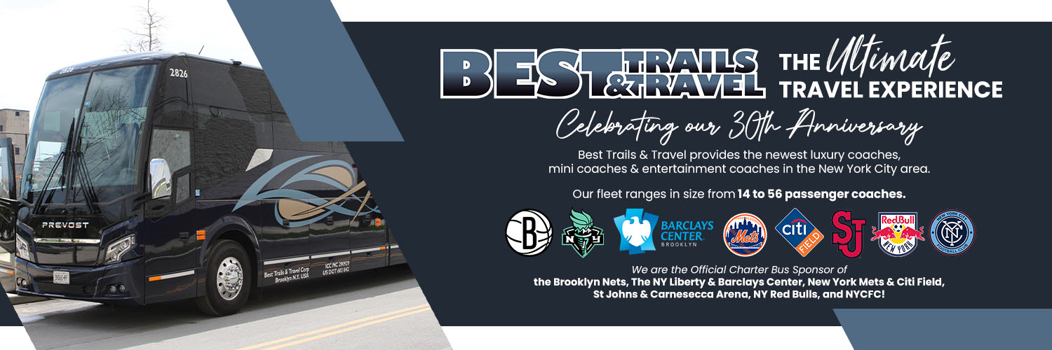 Official Charter Bus Sponsor of the Brooklyn Nets & Barclays Center, NY Mets & Citi Field, NY Liberty, St Johns & Carnesecca Arena, Red Bulls, & NYCFC