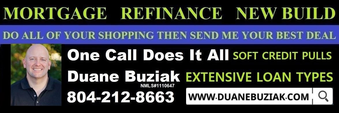 Duane Buziak Branch Leader NMLS:1110647 (804) 212-8663 | duane@coast2coastml.com NMLS#1110647 Licensed in VA/GA/TN/FL Coast2Coast Mortgage Company NMLS: 376205