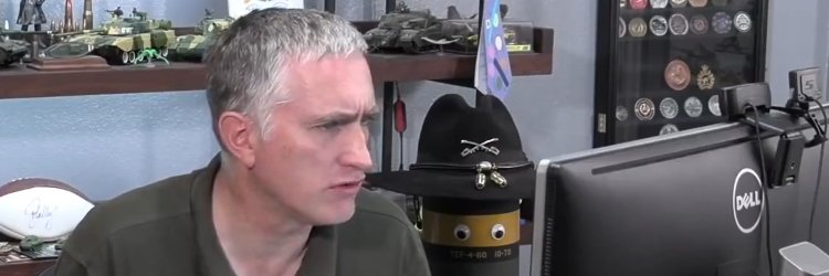 Tanker-boot wearing military vehicle historian. Nicholas Moran