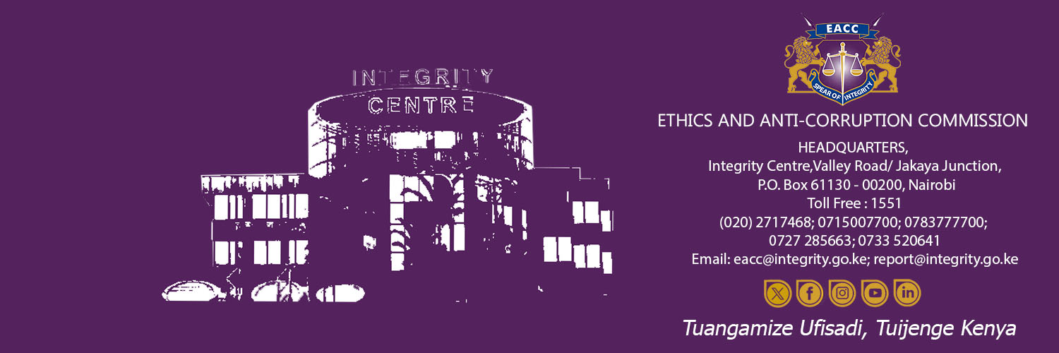 Mandated to combat and prevent corruption, and promote ethics and integrity in Kenya. For general inquiries, email customercare@integrity.go.ke.