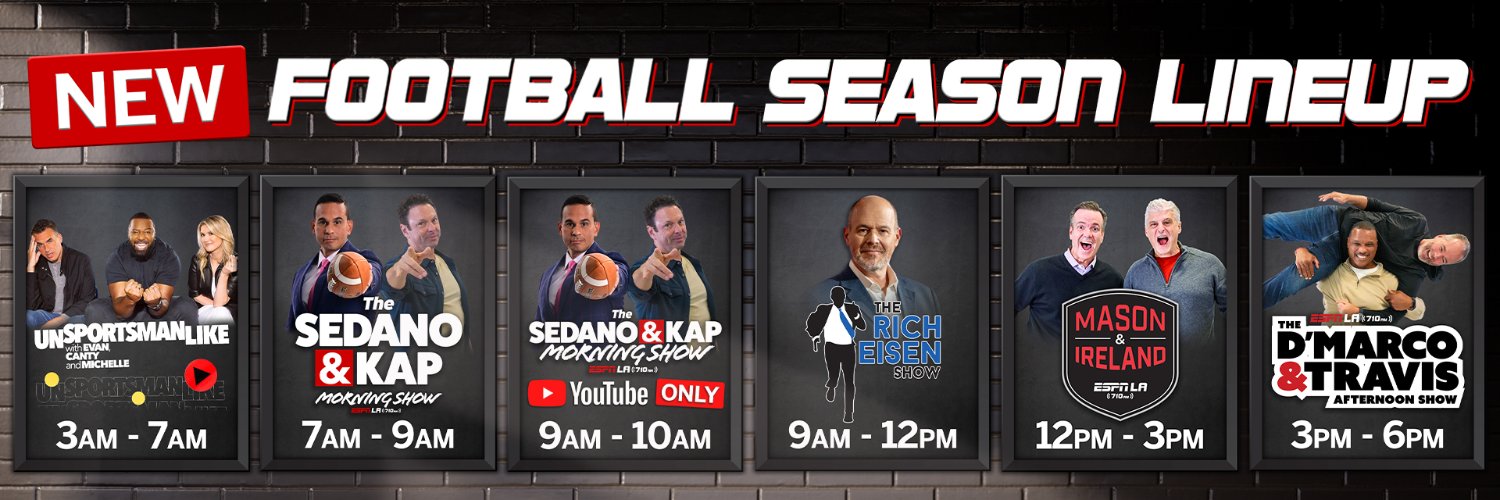 Hear UnSportsmanLike, Sedano & Kap, Rich Eisen, Mason & Ireland, D'Marco & Travis, plus Lakers, Rams, USC, Kings, Angels & LAFC on 710 AM & ESPN LA app