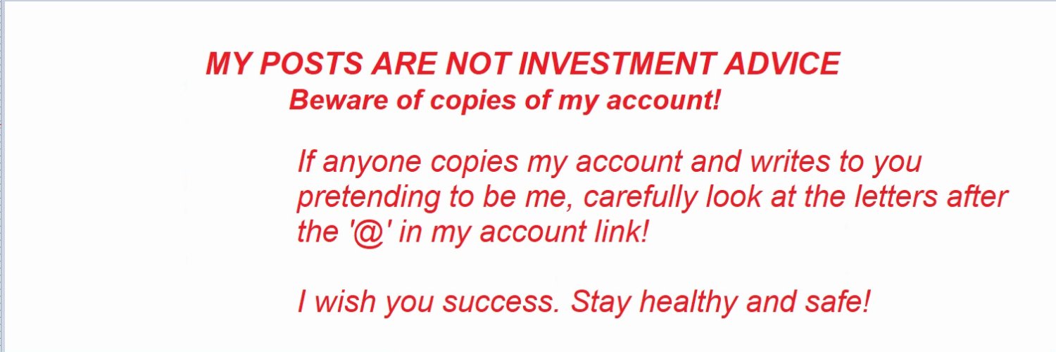 I have no other social media accounts besides this X account I also have no Telegram channel. Beware of copies of my account! MY POSTS ARE NOT INVESTMENT ADVICE