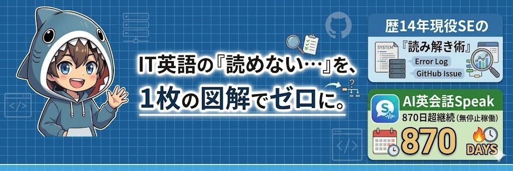 英語の長文エラーやGitHubが読めなくて「そっ閉じ」する人をゼロにしたい!SE歴14年|英語を全部読まずに、必要な情報だけを抜く『読み解き術』を図解発信。AI英会話Speakを800日以上も毎日継続中。英語アレルギーを一緒に克服しましょう!
