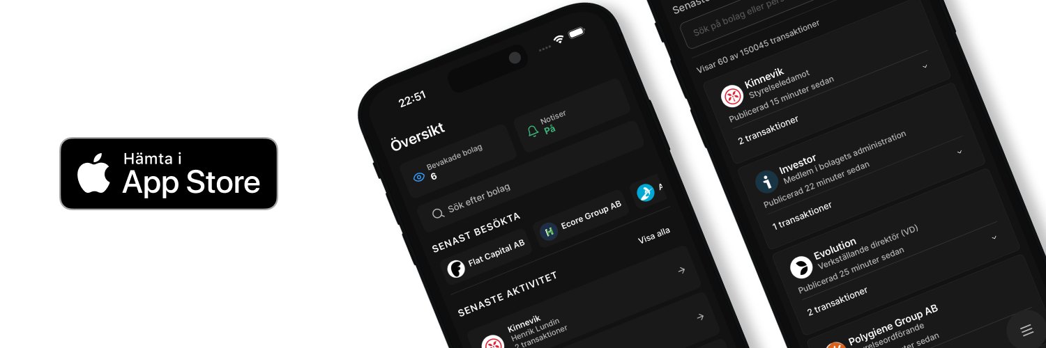 Missa aldrig en insynsaffär på Stockholmsbörsen! Få notiser direkt - hämta appen: https://insyn.io