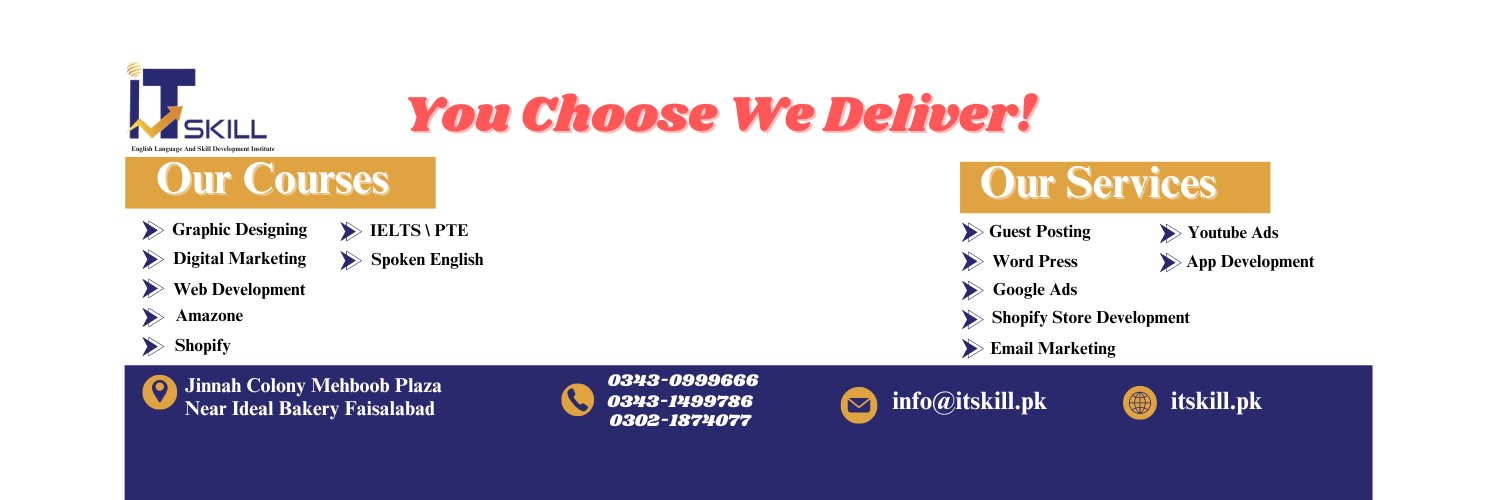 Mastering skills at ITSkill! Specializing in graphic designing, digital marketing, Amazon FBA,Shopify and IELTS. Join us for a hands-on learning experience!