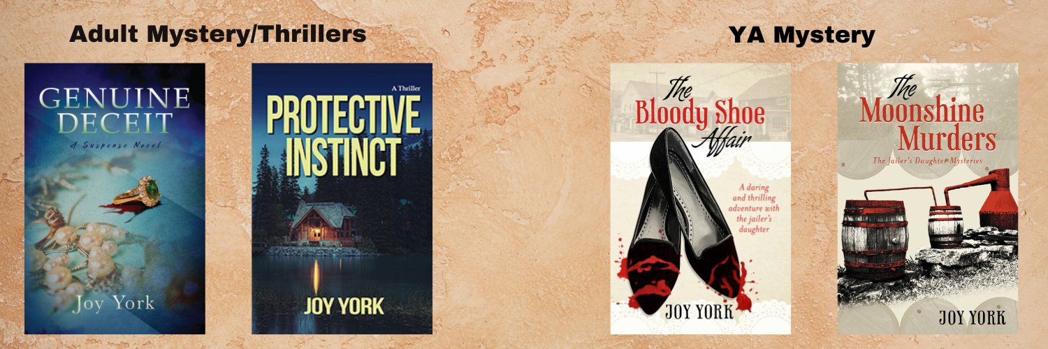 Author of Protective Instinct: A Thriller, Genuine Deceit: A Suspense Novel, and The Bloody Shoe Affair, a YA Mystery. http://JoyYork.com #SCBWI
