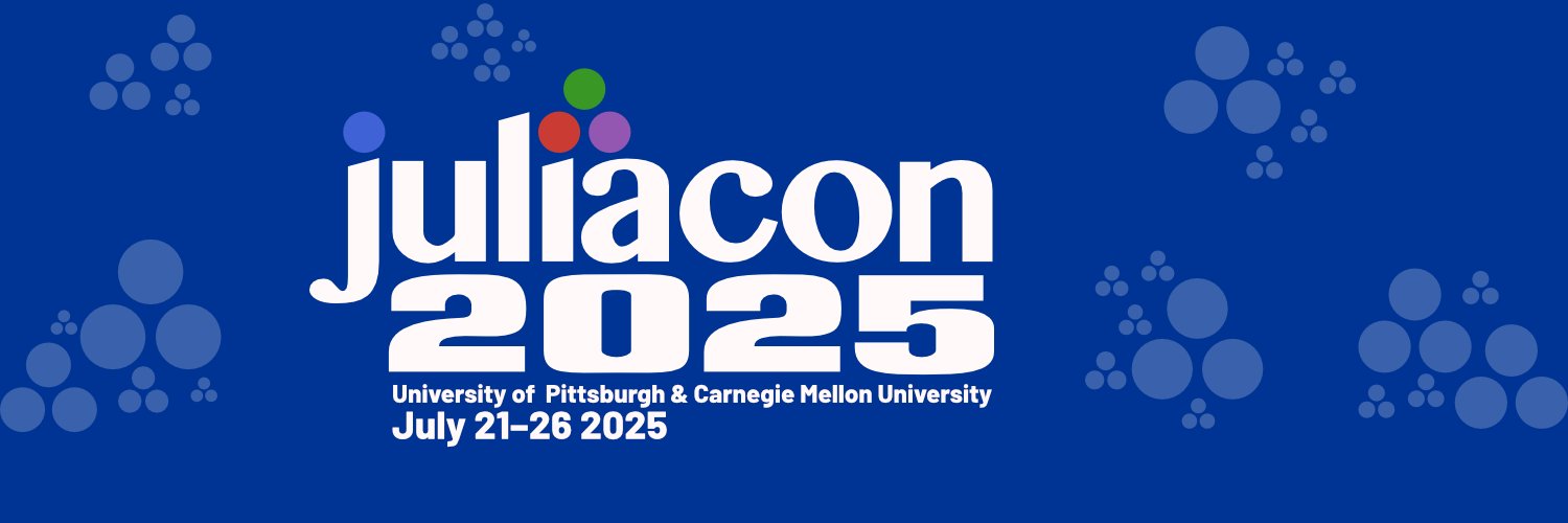 JuliaCon 2025 will be in-person in mid July, hosted at Pittsburgh, PA. Join the conversation at #JuliaCon and #JuliaLang. @JuliaLanguage @JuliaInclusive