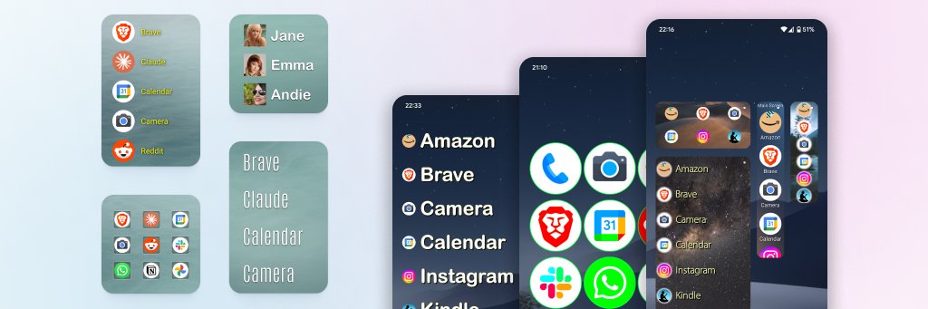 Android Home screen customization Widget and App Launcher. Organize and easily launch apps, direct dials, browser bookmarks and shortcuts