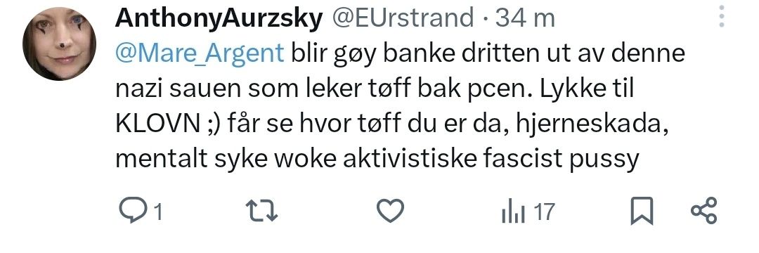 Fuck nazis. | She/her/cis | 'Heller dø stående enn knele levende'- Håkon Eriksen | M.E.-syk | Tar ikke folk her inne seriøst lenger. | 💚🤍 | 💙💛