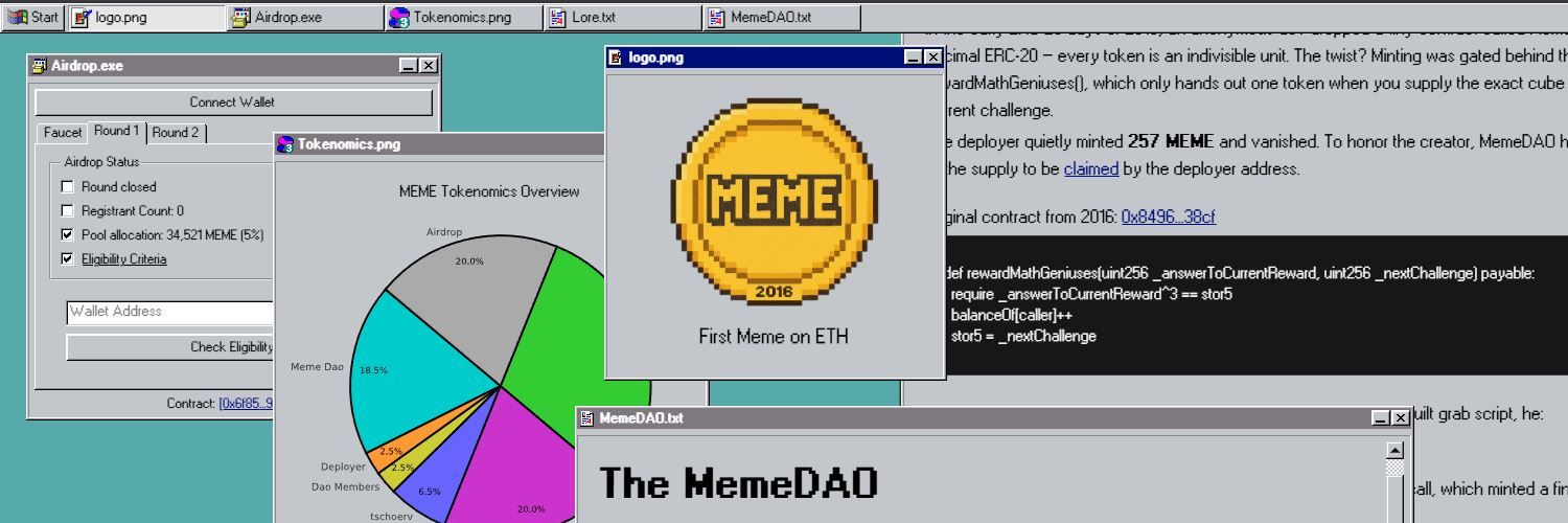 First $MEME on ETH. Launched on April 13, 2016. Discord: - CA: 0x69420bb3b07cd7cDa30d589E0f6563cEd3669420