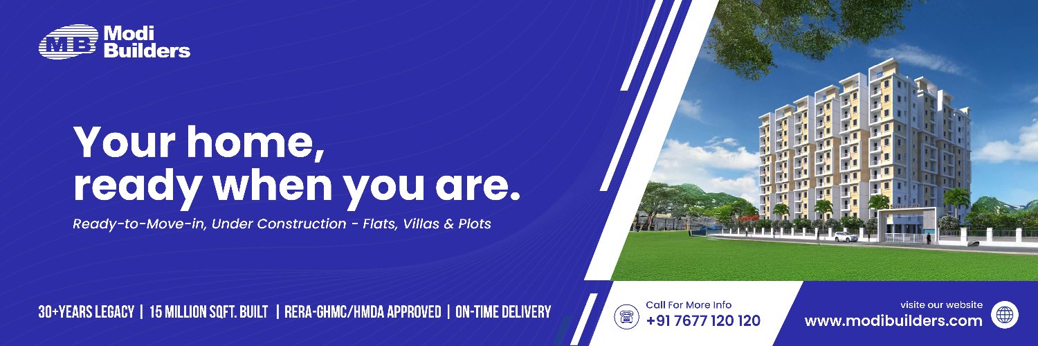 π‘ Leading Real Estate & Construction in Hyderabad & Secunderabad β¨ Luxury Apartments | Villas | Plots π Queries? Call us: +91 7677120120 #modibuilders