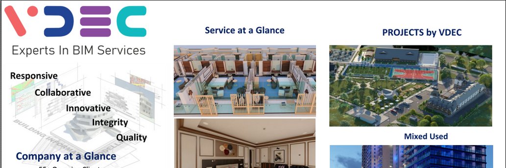 VDEC is a certified ISO/SME firm based in Hyderabad, India. Our BIM modeling, Architecture, structure, MEPFP coordination, Revit Family, and Scan to BIM service