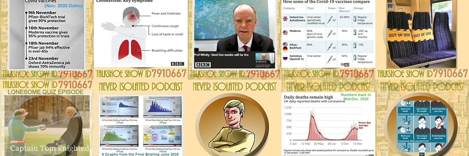 Supporting my Podcast 'Never Isolated' Which covered Covid-19 from March 2020 to March 2022 Mostly UK perspective. Hosted on @TalkShoe Show ID 7910667 #podcast