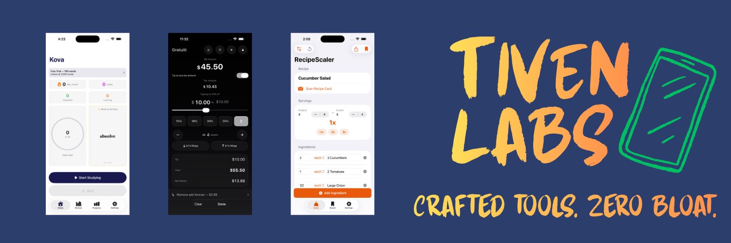 Indie iOS studio. Crafted tools, zero bloat. No subscriptions, no tracking, no nonsense.