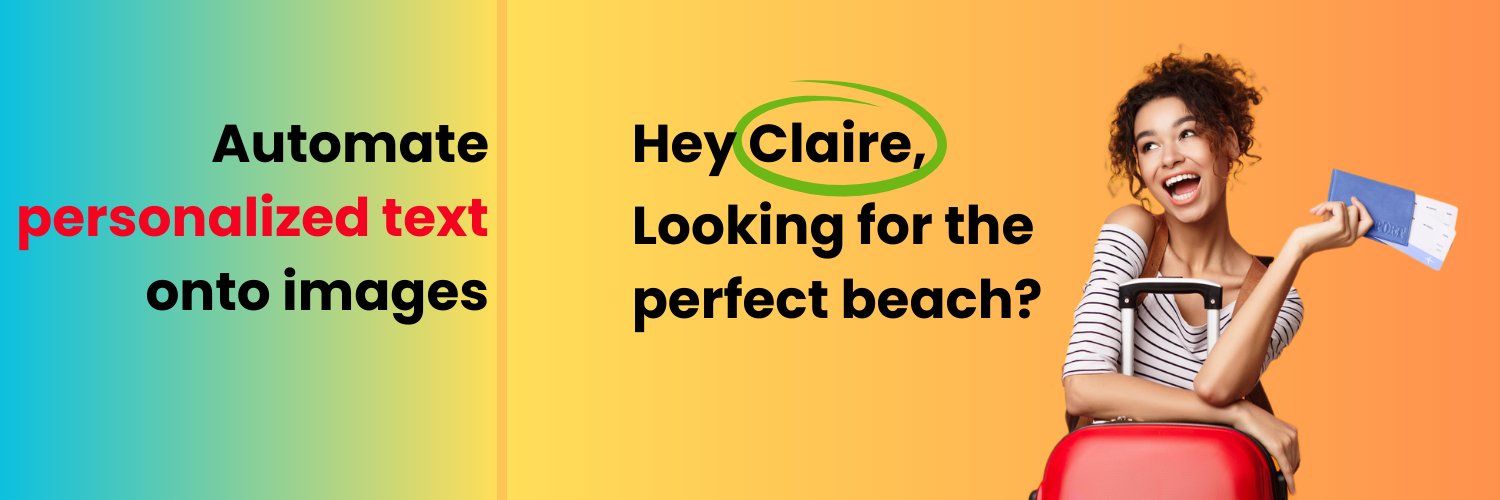 Increase user engagement by adding personalised text on top of images, in emails and websites, using merge tags and data in your Email Service Provider or DB.