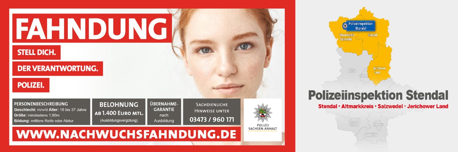 Account Polizeiinspektion Stendal. Keine Notrufe/Anzeigen! Nicht 24h besetzt. Im Notfall 110 wählen!