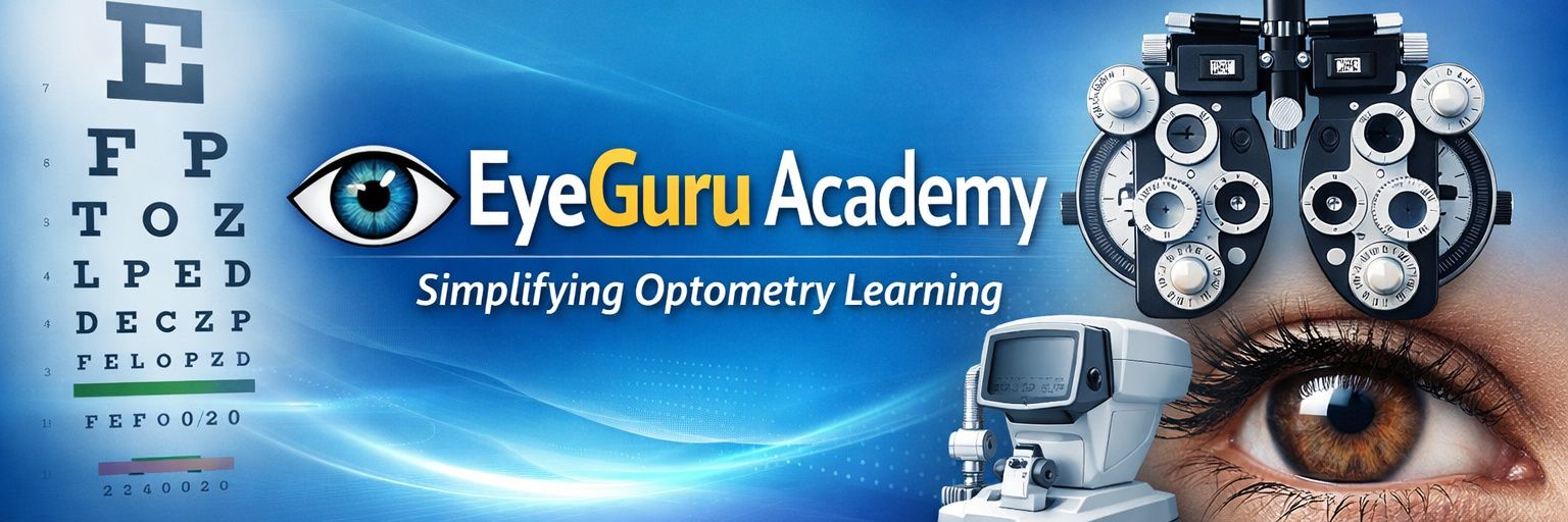 EyeGuru Academy ๐๏ธ Simplifying Optometry for Everyone ๐ Notes | MCQs | Clinical Skills ๐ฏ Helping Students & Interns Learn Better ๐ฉ DM for queries & guidance