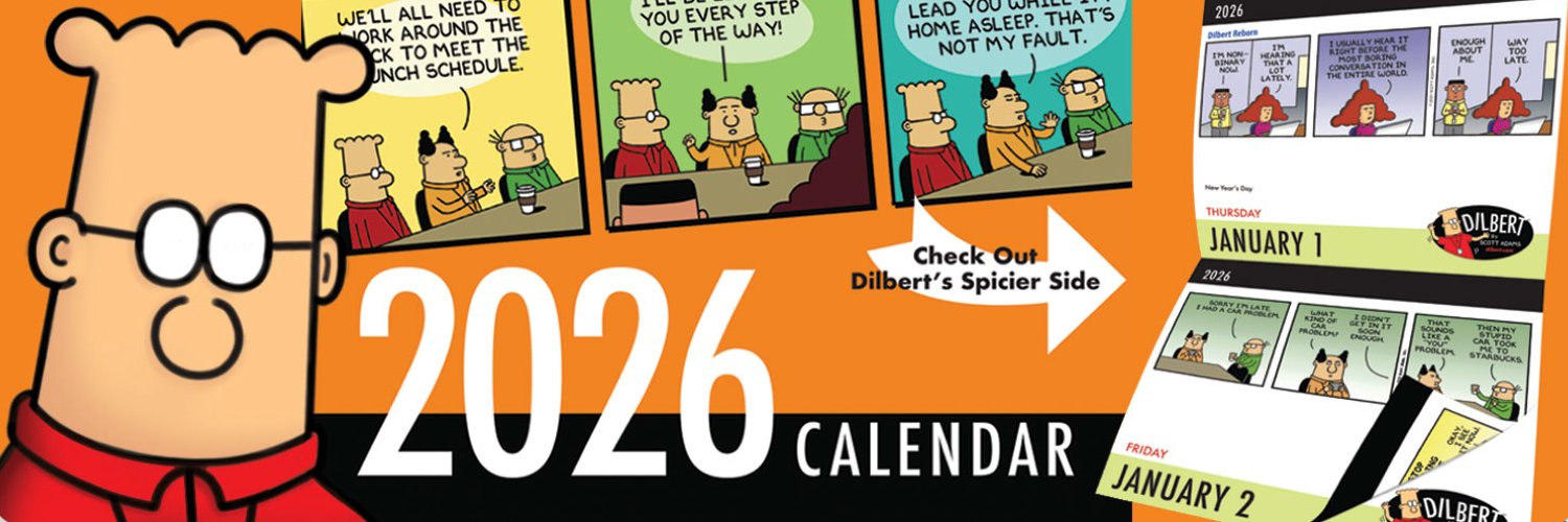 The 2026 Dilbert Desktop Calendar (double-sided) is available now, only on Amazon for USA. Beware of pirates!