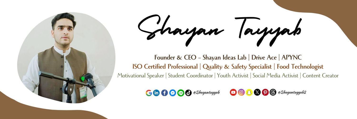 CEO – Shayan Ideas Lab | Drive Ace | APYNC | HR & Social Media Manager | Visiting Junior Instructor | Food Technologist | Quality & Safety Specialist