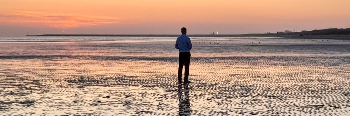 BBC reporter. Stands on clifftops.