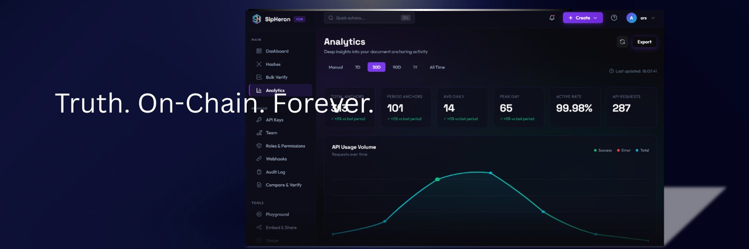 Trust infrastructure on Solana. Anchor any document tamper-proof & verifiable forever. Open source CLI/SDK. Try free: npm install -g sipheron-vdr |