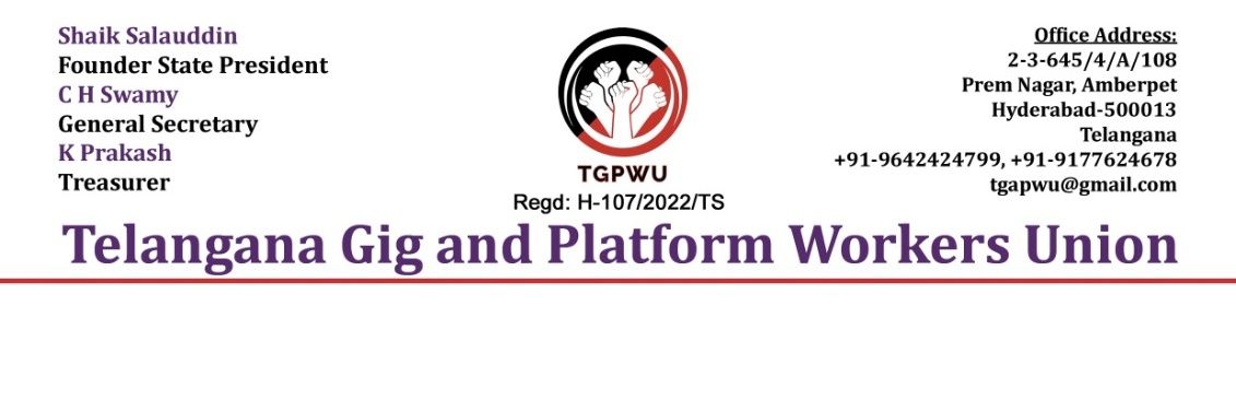 @ShaikTgfwda National General Secretary @Connect_IFAT | Founder President Telangana Gig and Platform Workers Union @TGPWU | Board Member @IAATW_Org
