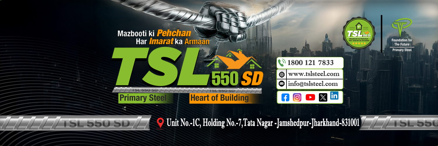 Tsl Steel Mazbooti bhi Bharosa bhi Har Imarat ka Dil π¦Ύ π 1800 121 7833 π Unit No.-1C, Holding No.-7,Tata Nagar -Jamshedpur βοΈ info@tslsteel.com