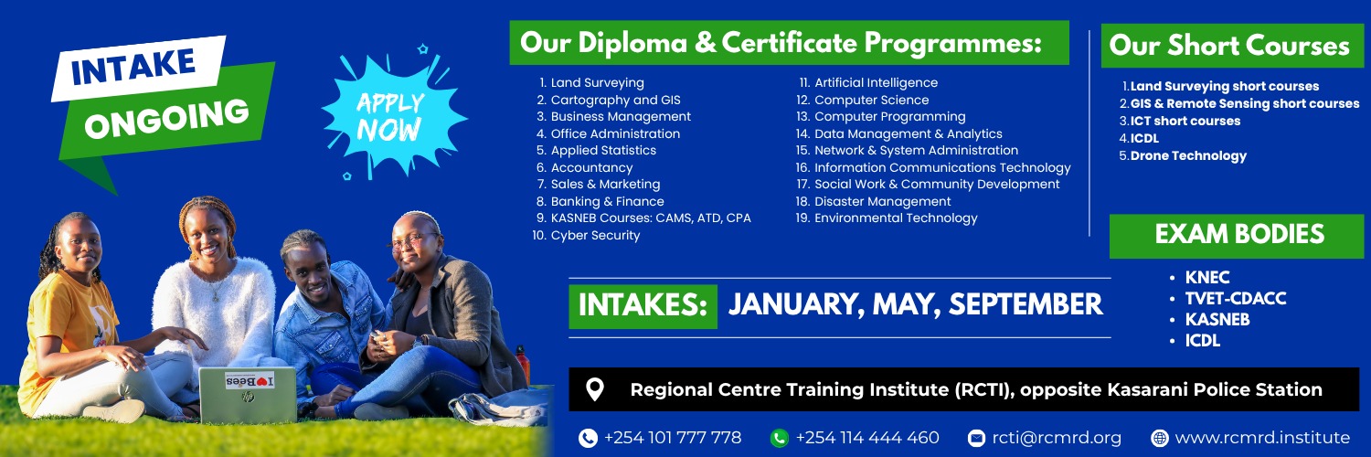 @TheRCTI_RCMRDA constituent college of the Regional Centre for Mapping of Resources for Development (RCMRD) & TVET-accredited. A Premier Centre of Excellence! #MapYourFuture