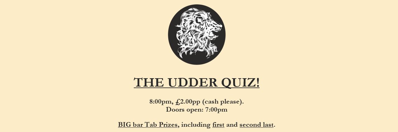 WE ARE NOW ON INSTA @theudderquiz Pub Quiz at the White Lion on Stroud Green Rd in N4 - Tuesdays from 7:30pm.