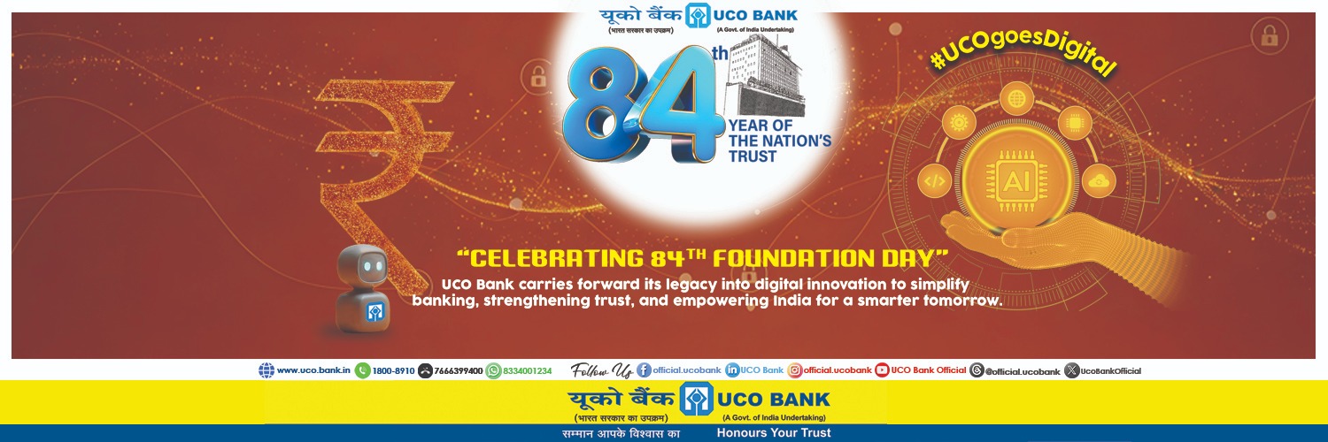 Welcome to Official Twitter handle of UCO Bank. Founded in 1943,UCO Bank is a Commercial Bank and a Government of India Undertaking. Toll Free Number: 18008910