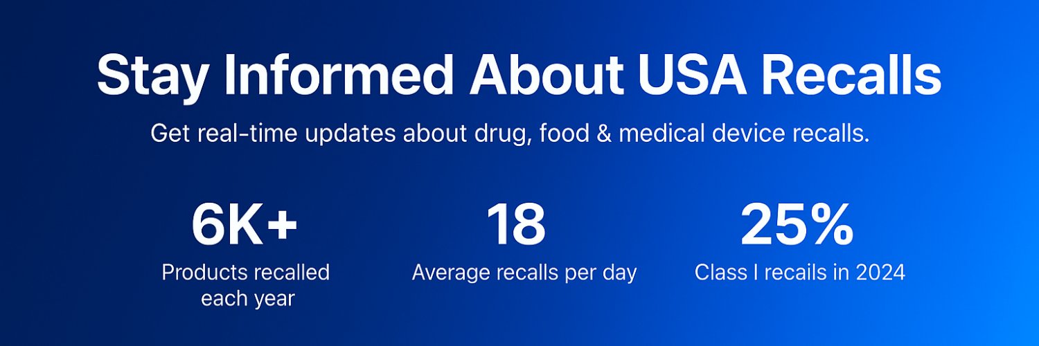 6K+ products recalled each year (18 per day)! Get real-time updates about drug, food, and medical device recalls on our platform and stay safe.