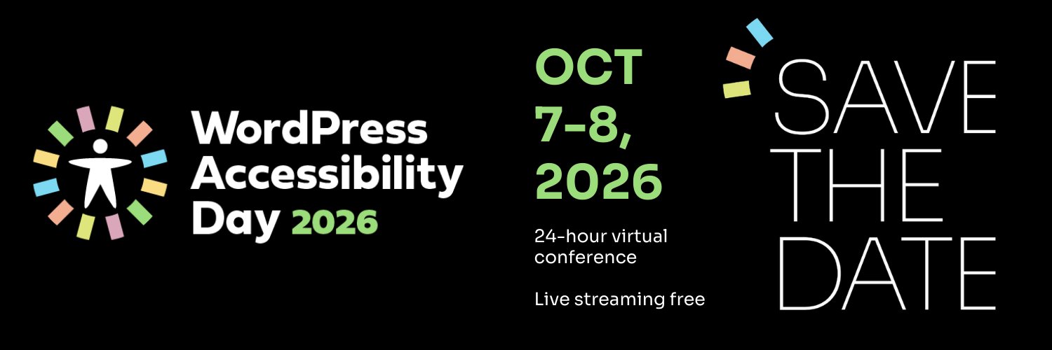 Official Twitter account of the WordPress Accessibility Day Conference a virtual 24-hour conference on #WordPress and #a11y. Next event October 15-16, 2025.