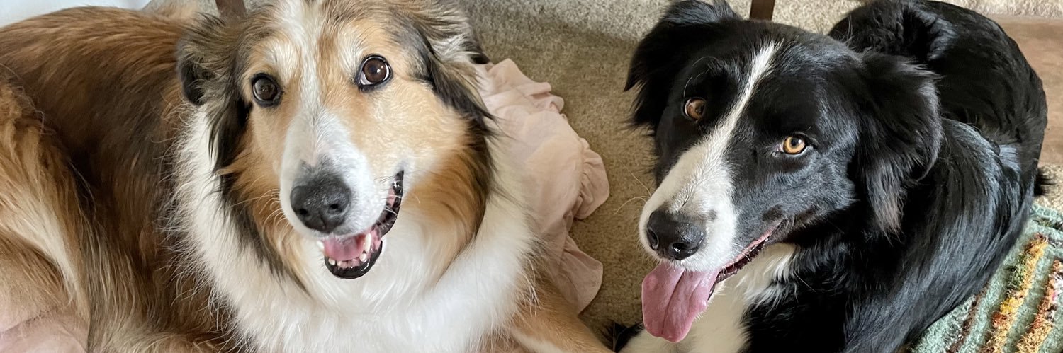 Scottish Collie pup following in Wilma’s paw prints