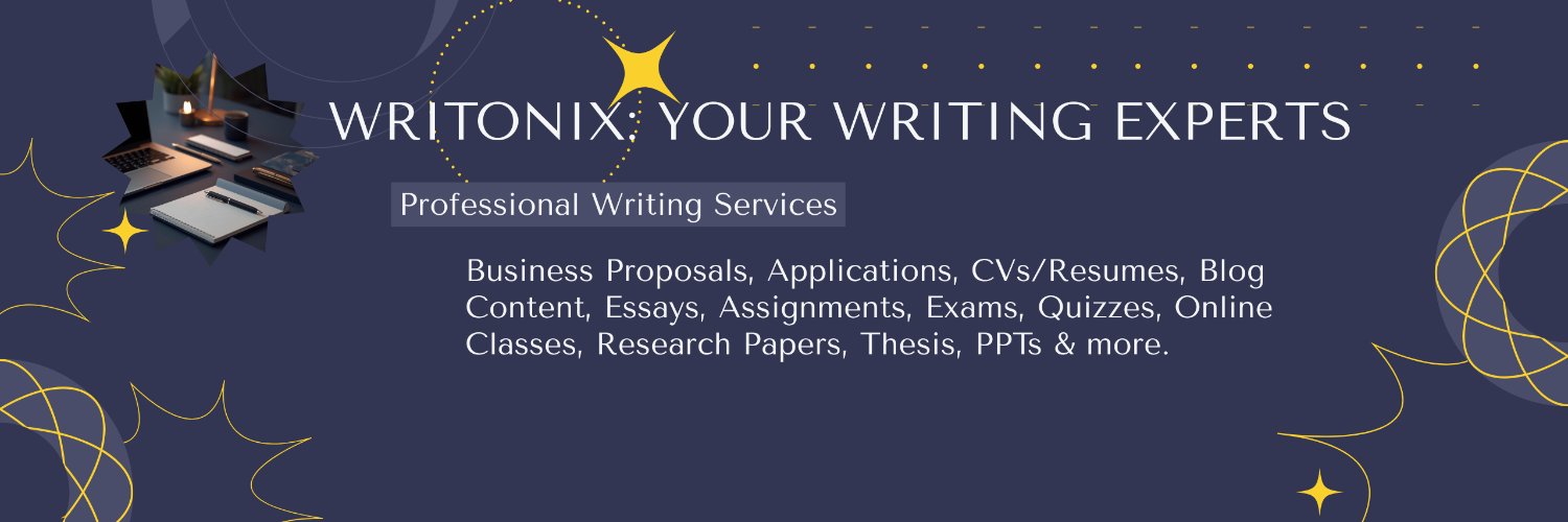 @Writonix_Writing: Proposals, Applications, CVs, Blog, Essays, Assignments, Exams, Quizzes, Online Classes, Research Papers, Thesis, PPTs & more. WhatsApp: +1 518 754 473