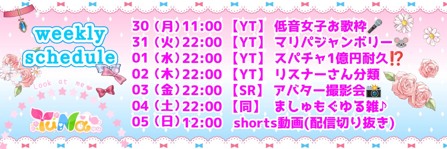マシンガントーク系Vsinger♥┊︎YouTubeかSHOW ROOMで22:00〜配信中(水は時間不定期/木休み)┊︎個人勢┊︎DMはお仕事orコラボ系のお誘いのみ🙆┊︎AI学習禁止🈲┊︎ママ▶ @_tennmy ┊︎総合 ▶ #YuNaのお茶会 ┊︎HP▶