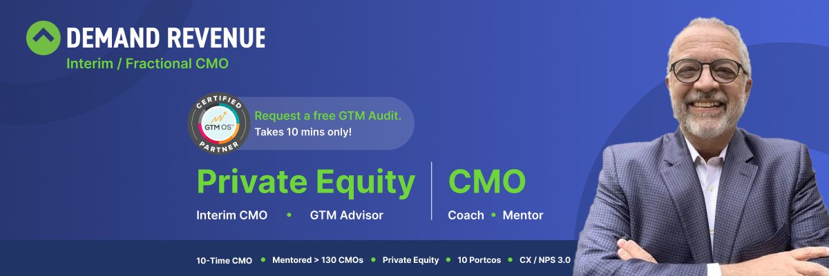 The 11-time #CMO Preferred by #PrivateEquity ■ 150+ CMO Coach ■ Ignite Growth @SaaS & Enterprise Software + #Health Tech ■ #FractionalCMO ■ #InterimCMO ■