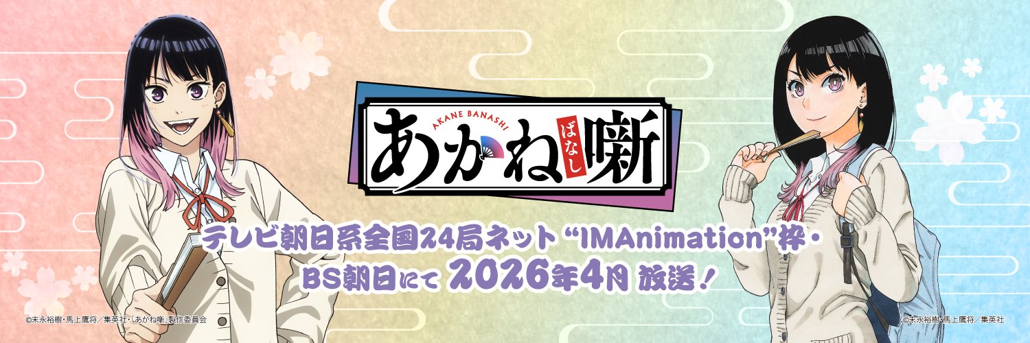 週刊少年ジャンプで連載中の落語漫画『あかね噺』(原作:末永裕樹、作画:馬上鷹将)の公式アカウント。コミックス1~20巻好評発売中!最新21巻は4/3(金)発売!4月4日より毎週土曜日 夜11:30~TVアニメ放送開始!