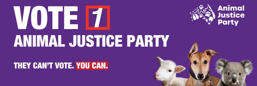 The only political party in Australia dedicated to ending animal cruelty. Authorised by: L. Elisei, Animal Justice Party, 470 St Kilda Road, Melbourne VIC 3004