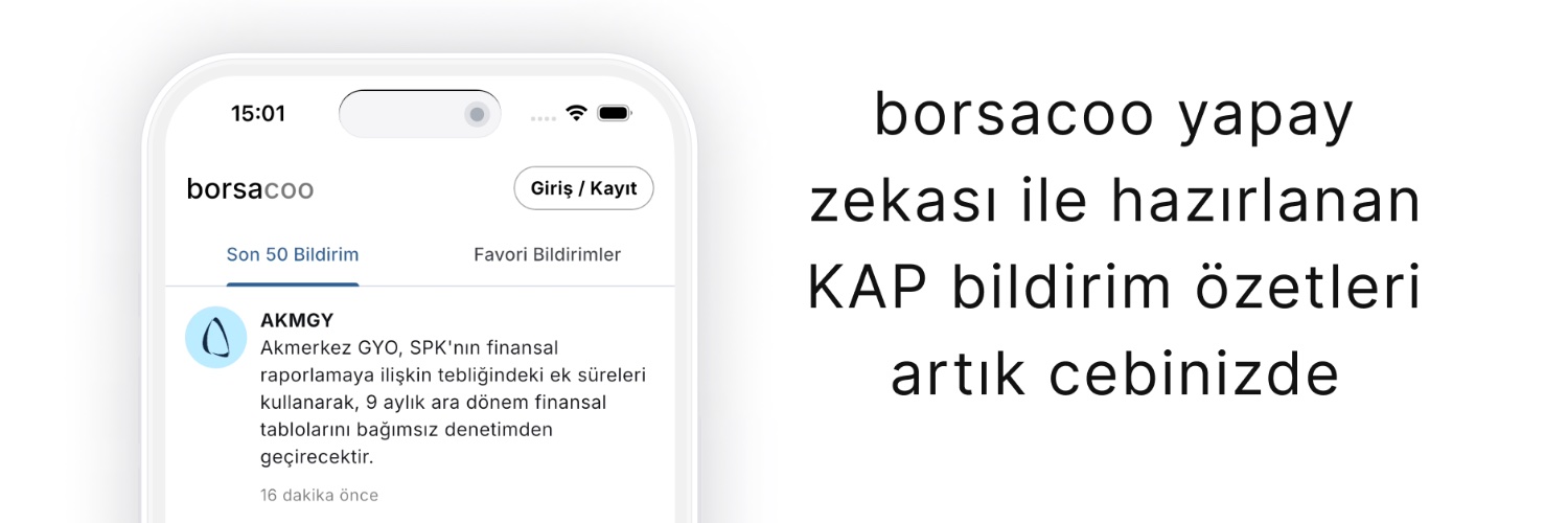 Günlük KAP bildirimlerini yapay zeka ile anında özetleyip size sunuyoruz. Paylaşımlar yatırım tavsiyesi değildir ve hata içerebilir.