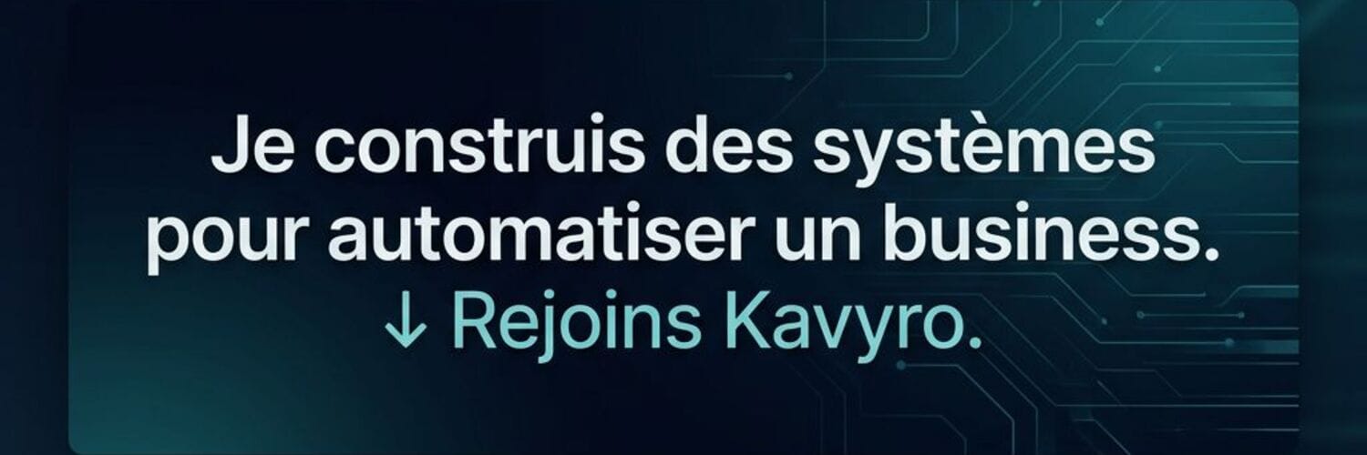 Je partage ce que je construis pour automatiser un business avec l’IA, n8n et les agents. Workflows, systèmes, cas concrets. ↓ Rejoins Kavyro