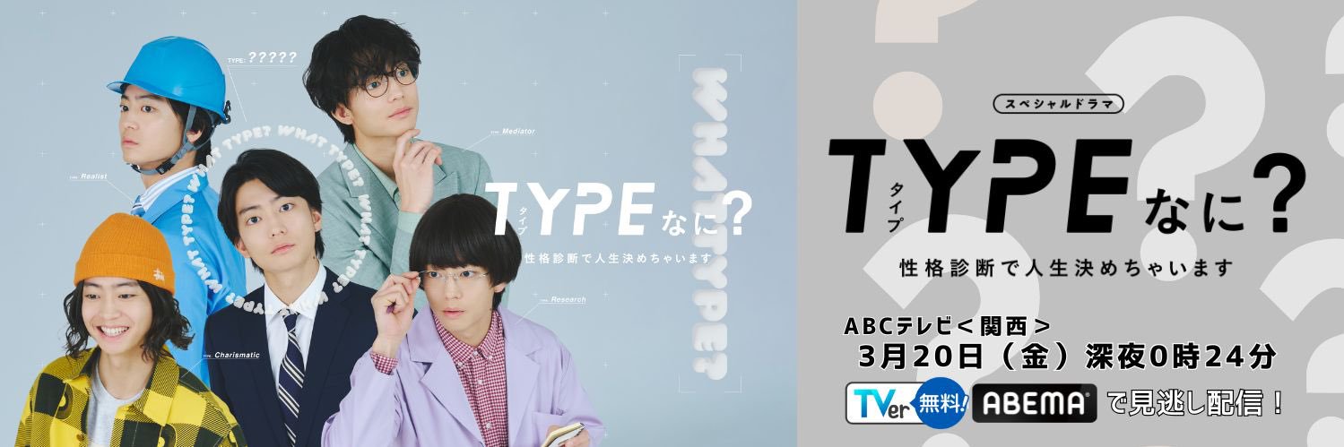 3月20日(金・祝)深夜0時24分(関西)📺 #TVer #ABEMA で見逃し配信⚡️ 採用面接に行ったら4タイプの僕が現れた😧 性格診断で人生が決まる!? #伊藤健太郎 が1人5役で挑む前代未聞の診断系SFコメディー🔍 スペシャルドラマ #TYPEなに 💚🩵💛💜