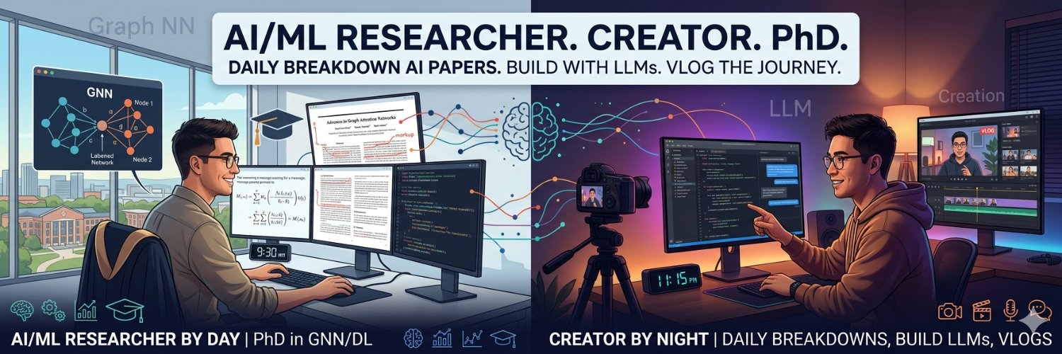 AI/ML Researcher by day. Creator by night. PhD in GNN/DL | Daily break down AI papers, build with LLMs, and vlog the journey