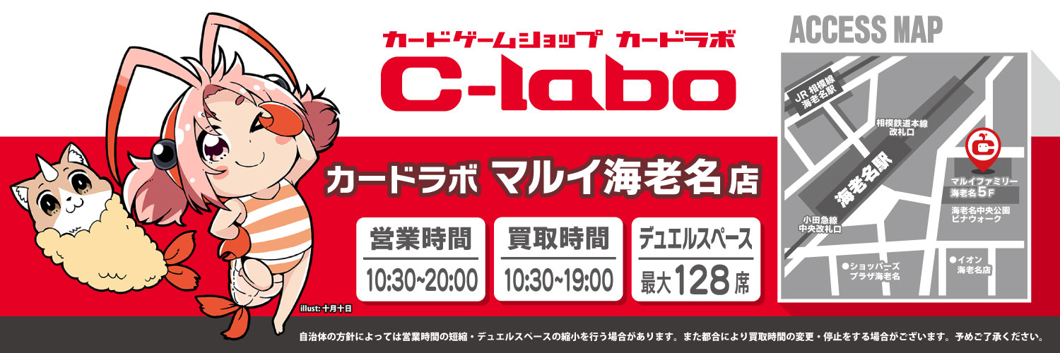 カードラボマルイ海老名店の公式アカウントです! 営業時間10:30~20:00(最終買取受付~19:00) ★オンラインデュエルスペース稼働中★ ⇓Discord招待URL⇓ ※個別のリプライ・DMへはお返事致しかねます。