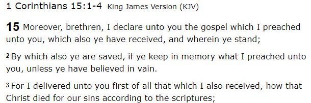 Gospel of Salvation is 1Corthianians 15:1-4 KJV Bible. Salvation is a Gift not of Works (Ephesians 2:8-9) Eternal Security is John 10:28-30 & 1 John 5:13