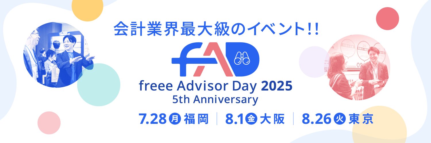 freeeを使って税務・会計業務をこなす、士業さま向けの公式アカウント。 リリース情報やセミナー、トピックスなどについてご案内を行ってまいります✨ (お問い合わせは各サポート窓口にお願いいたします) freee公式SNSアカウント一覧 →
